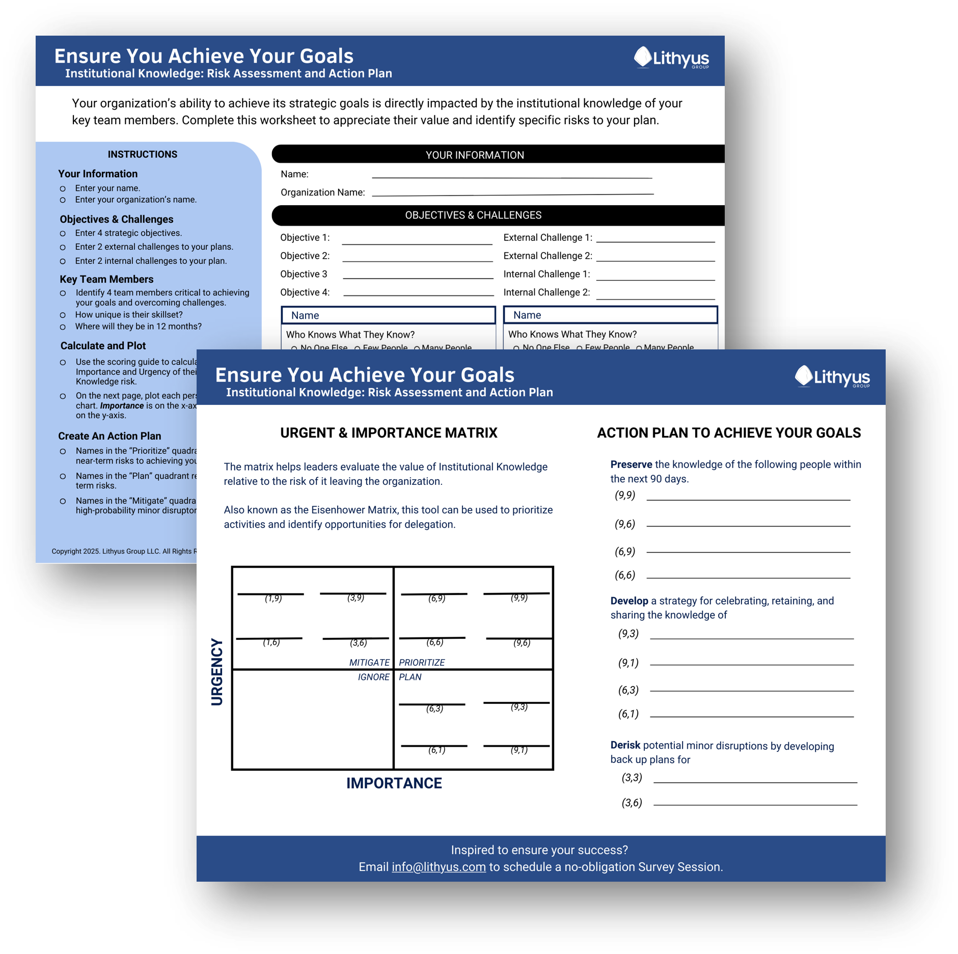 This fillable PDF is a quick way for leaders to connect their goals to their people and prioritize how to take action to derisk both.