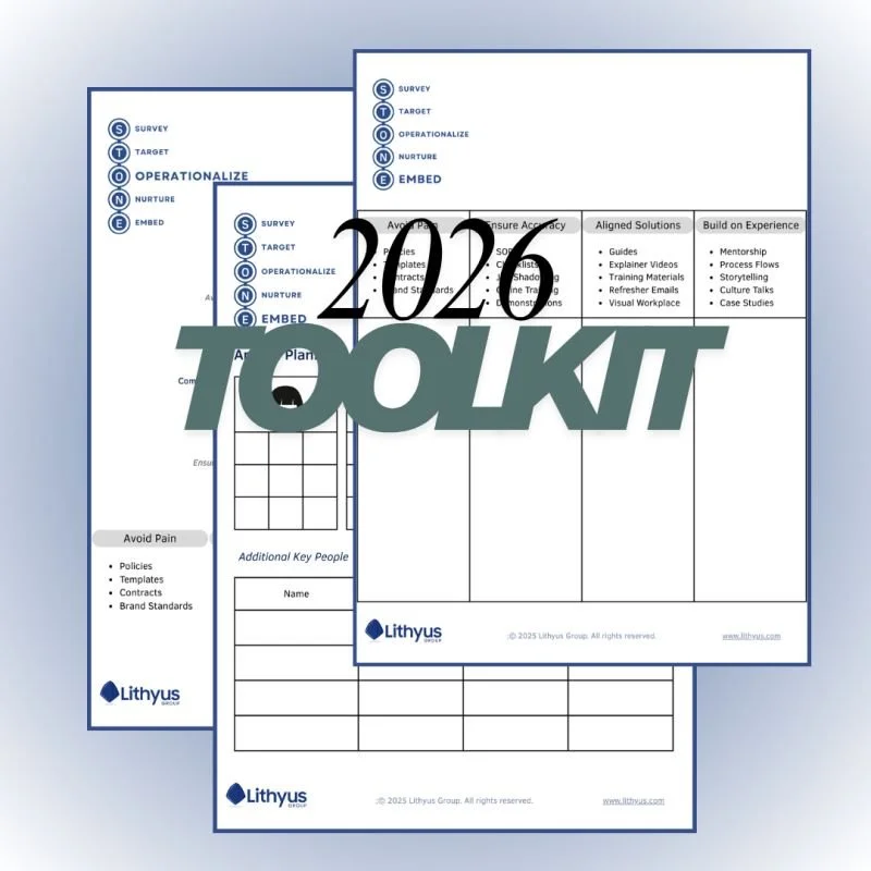 Use Lithyus Group’s proven STONE approach to identify institutional knowledge within your team and make a plan to celebrate, preserve, and scale it.